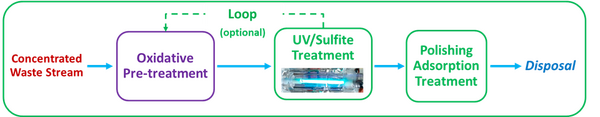 - Coloration in waste streams may also impact the effectiveness of the UV/sulfite treatment system by blocking the transmission of UV light, thus reducing the UV lamp's effective path length. To address this, pre-treatment may be necessary to enable UV/sulfite destruction of PFAS in the waste stream. Pre-treatment may include the use of strong oxidants or coagulants to consume or remove UV-absorbing constituents.